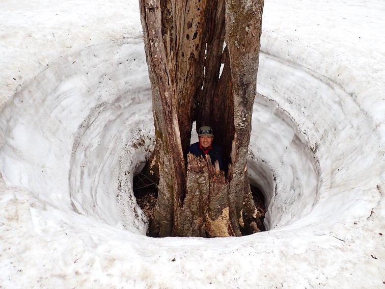 | 大木のブナの洞に入るブナ彦(5/6撮影) |